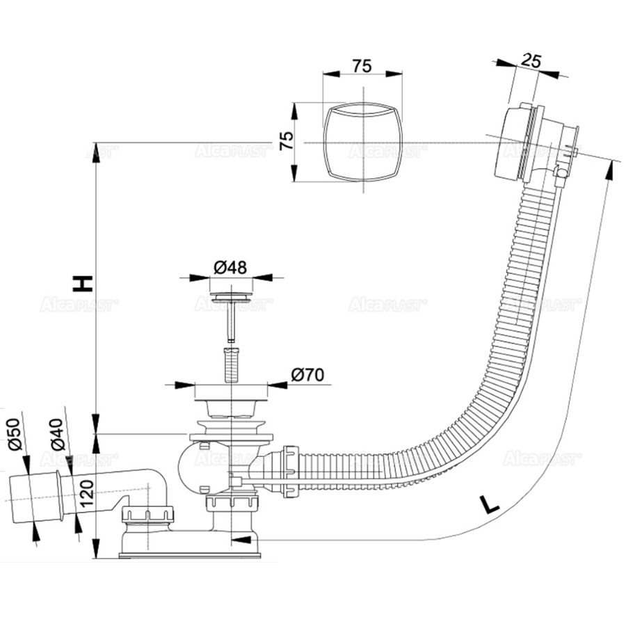 Полуавтоматический слив-перелив для ванны Alcaplast A51CR-100 изготавливается из высококачественных материалов.
