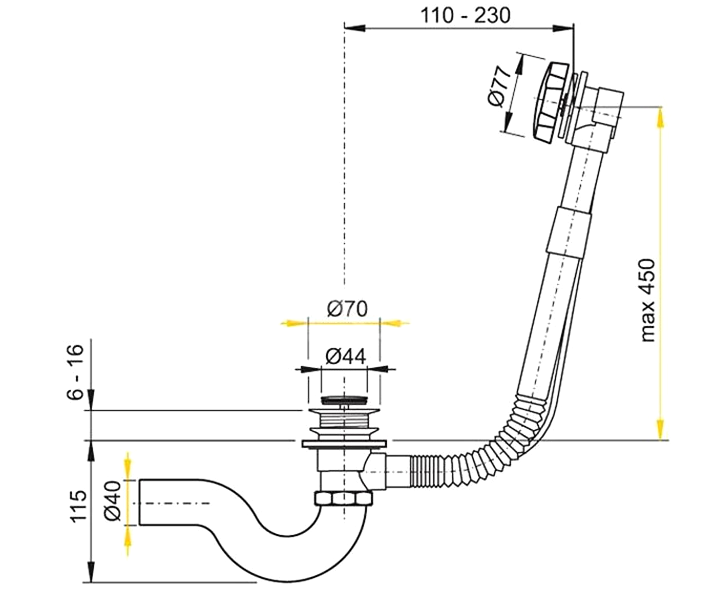Слив-перелив для ванны Timo 8003 gold полуавтомат.