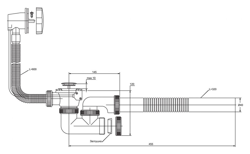 Слив-перелив VirPlast 30982476 L70 G 1 1/2. Гибкая пластиковая гофротруба системы перелива длиной 600 мм, диаметром 40x40 мм. Решетка цвета хром из латуни и пластика. Гидрозатвор с вращающимся коленом. Чтобы легко определить нужную длину шланга перелива, нужно сложить высоту и длину от слива до перелива. Цена указана за слив-перелив. Все остальное приобретается дополнительно.
