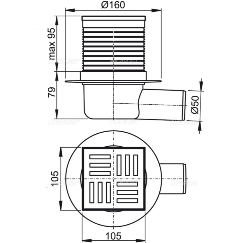 - Корпус сливного трапа с боковым подключением к стоку 50 мм.
