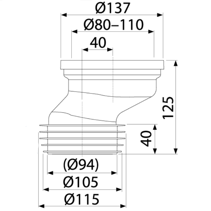 Выпускной патрубок для стока воды к унитазу эксцентрический гофровый Alcaplast A991-40 - изготавливается из высококачественных материалов.