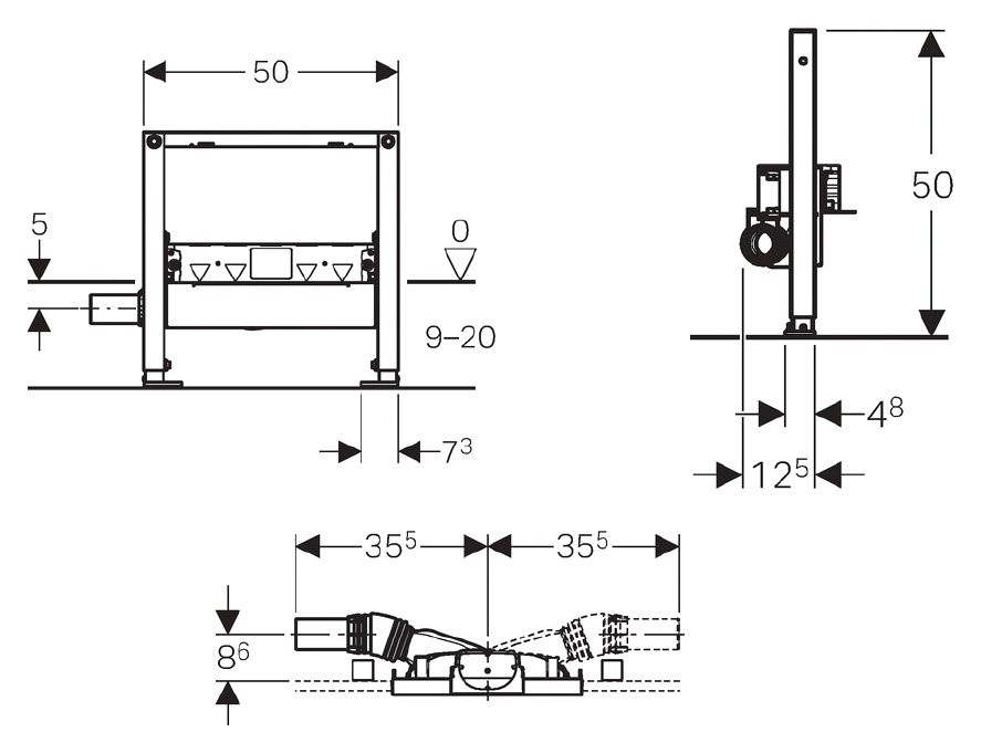 - Минимальная высота выравнивающей стяжки на сифоне: 9 см.