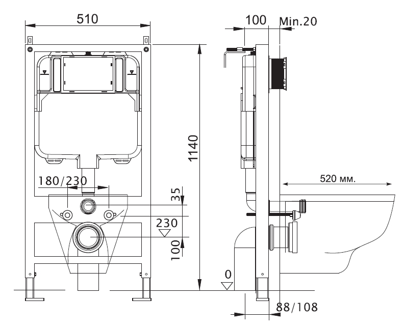 Инсталляция Aquatek Slim INS-0000003 для унитаза с Белой клавишей смыва