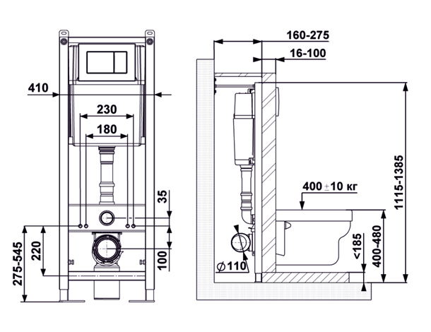 - Объем смывного бачка: 8,5 л. Двухрежимная арматура с возможностью настройки смыва 3/5,5-8,5 литров.