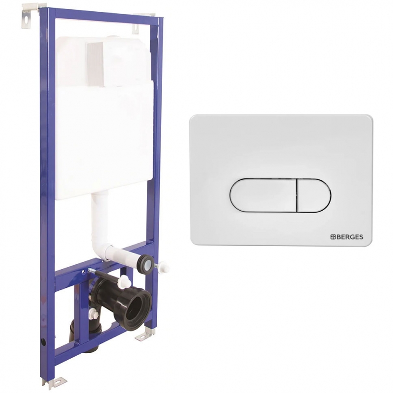 Инсталляция Berges Wasserhaus Novum D1 со смывным бачком и белой клавишей смыва. Артикул: 040231.