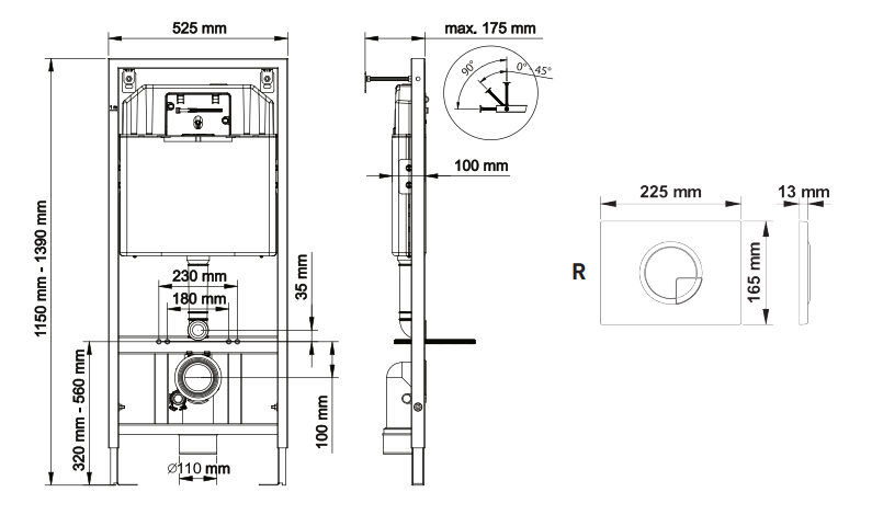 Инсталляция Berges Wasserhaus Novum R2 040222 для подвесных унитазов с клавишей смыва Матовый хром