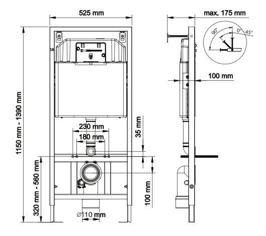 - Объем смывного бачка: 8,5 л. Возможность настройки слива в диапазоне от 4,5 до 8,5 литров в минуту.
