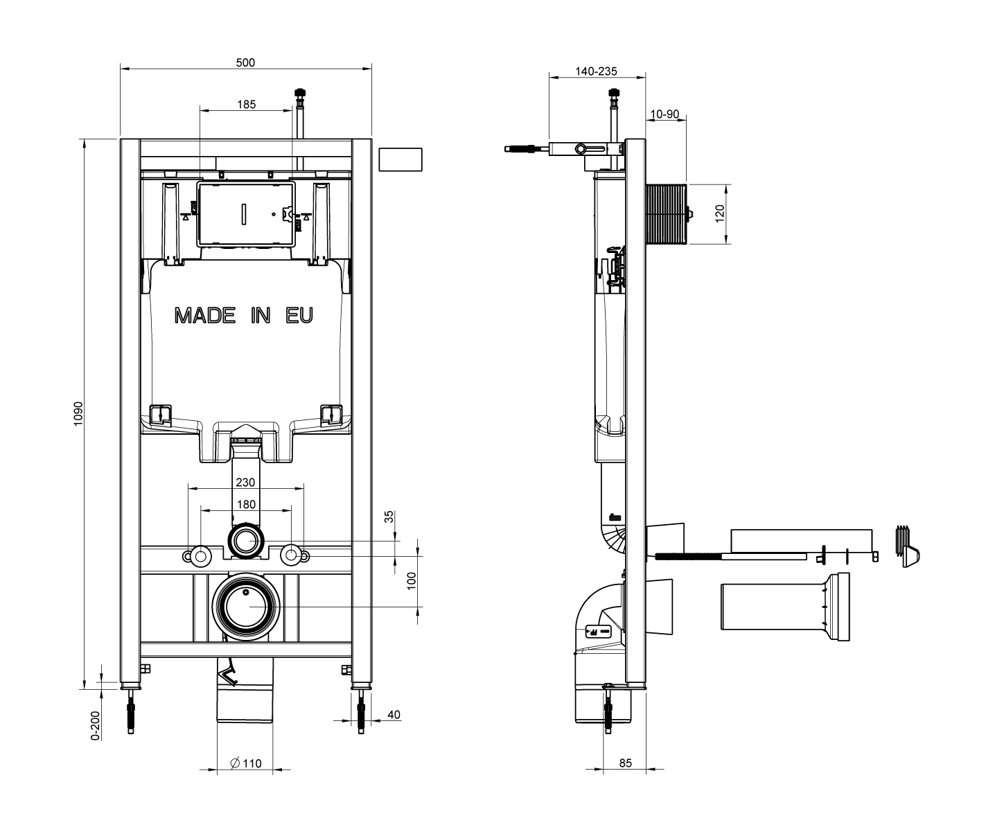 - Инсталляция для подвесного унитаза Jacob Delafon E29025-NF со смывным бачком, с двойной системой смыва.