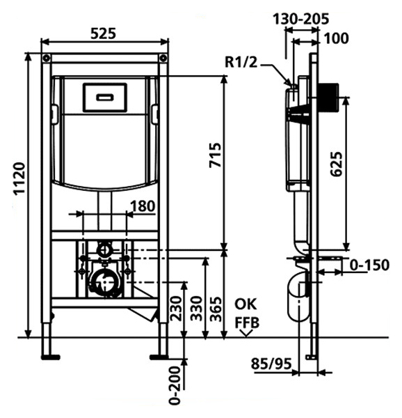 Стандартная инсталляцияSanit Ineo Plus 90.721.00..S013 с бачком скрытого монтажа и с хромированной клавишей двойного смыва, для подвесного унитаза.