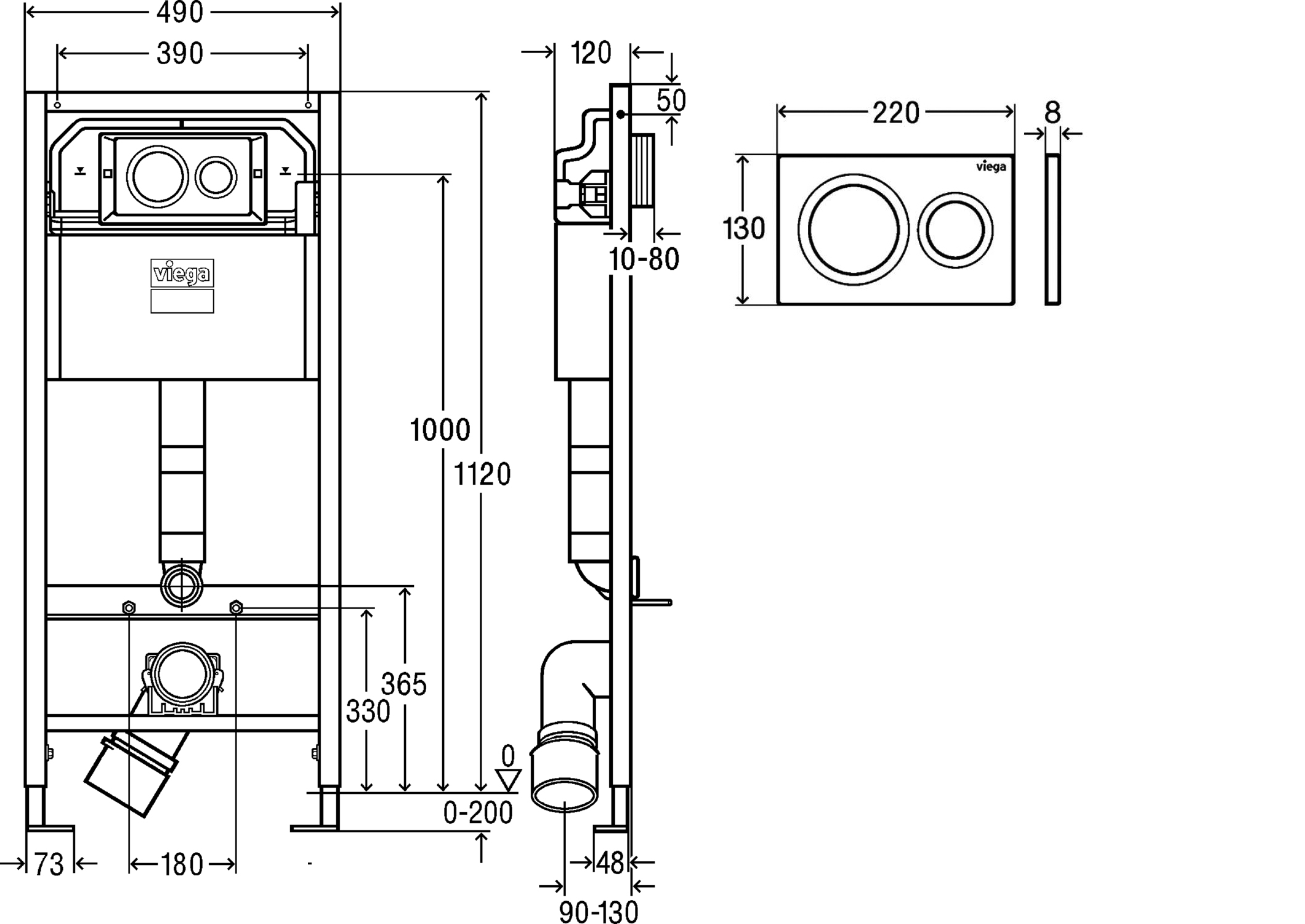 Инсталляция Viega Prevista Dry 792855 для подвесного унитаза.