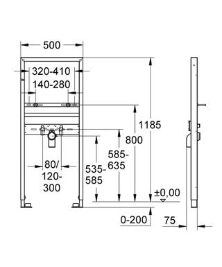 Инсталляция GROHE Rapid SL для раковин арт. 38554000 Для смесителей на одно отверстие, монтажная высота 1,20 м, для монтажа перед стеной или стеной перегородкой, самонесущая стальная рама с порошковым напылением, подготовлена для облицовки, фиксированные подключения, для одиночного или рядного монтажа, быстрая регулировка по высоте, смывное колено, выдерживающее высокую температуру, DN 50 уплотнение Ø 32 мм. 2 звукоизоляционных подключения смесителя DN 15.