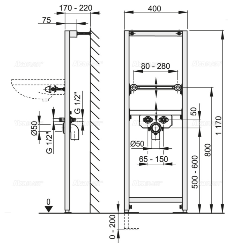 Монтажная рама Alcaplast A104/1200 для раковины Черная