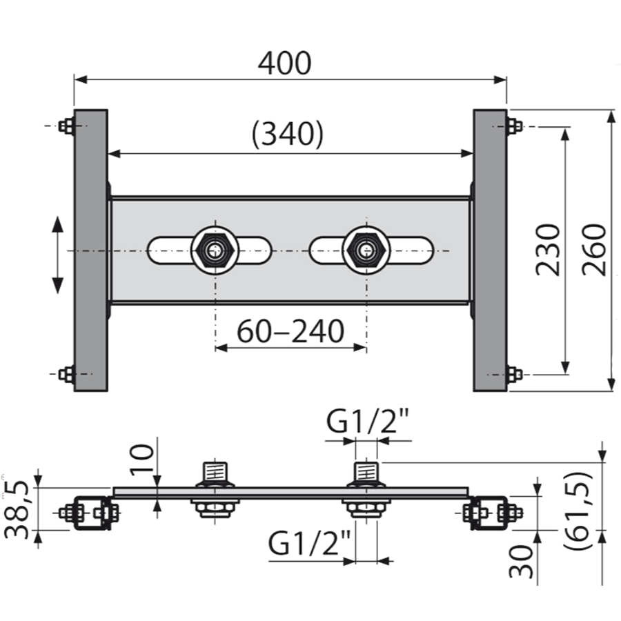 - Поперечина для крепления настенного смесителя с интервалом 60–240 мм.