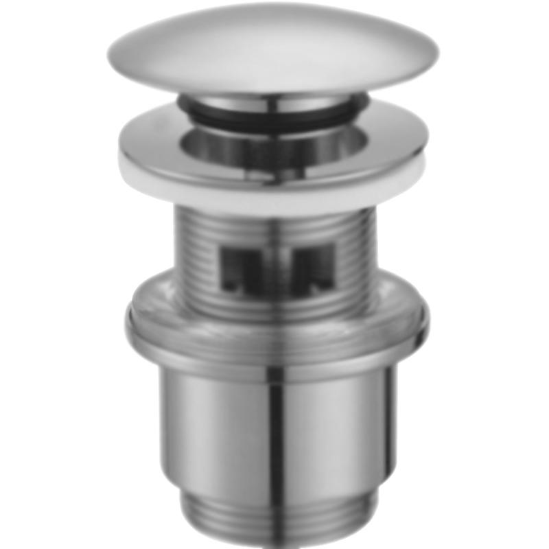 Донный клапан Cezares Articoli Vari G 1 1/4 CZR-SAT5-01 из латуни, цвета хром, для раковин и биде с переливом. Механизм: click-clack (управление с помощью пробки). Стандарт подключения: G 1 1/4. Диаметр пробки: 6,6 см. Регулируемая высота подсоединения к раковине: 3-5 см.