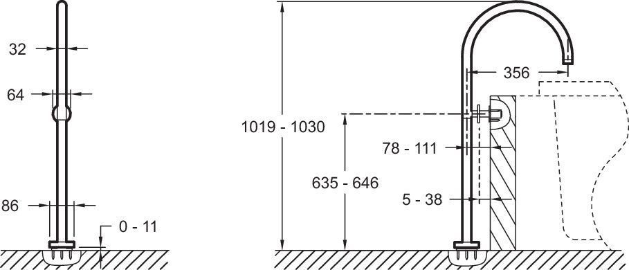 Высокий элегантный излив для ванны отлично подходит для различных интерьеров ванной комнаты благодаря привлекательному дизайну.