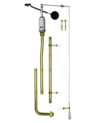 Механизм смыва для высокого бачка GSI BODR oro, с внешней трубкой в отделке золото, вес 3,45 кг.