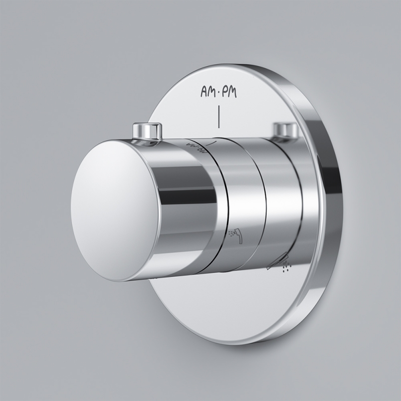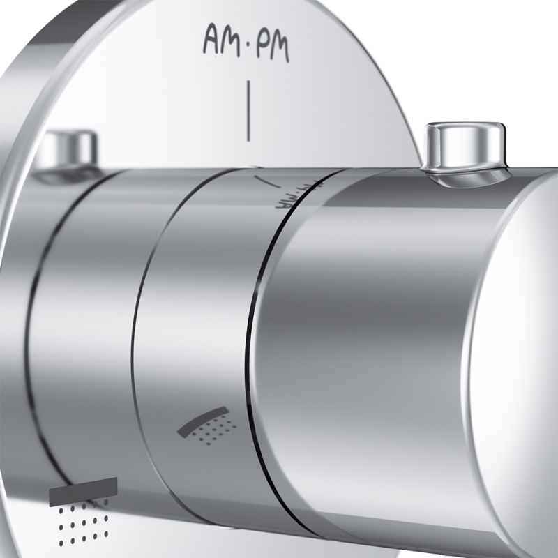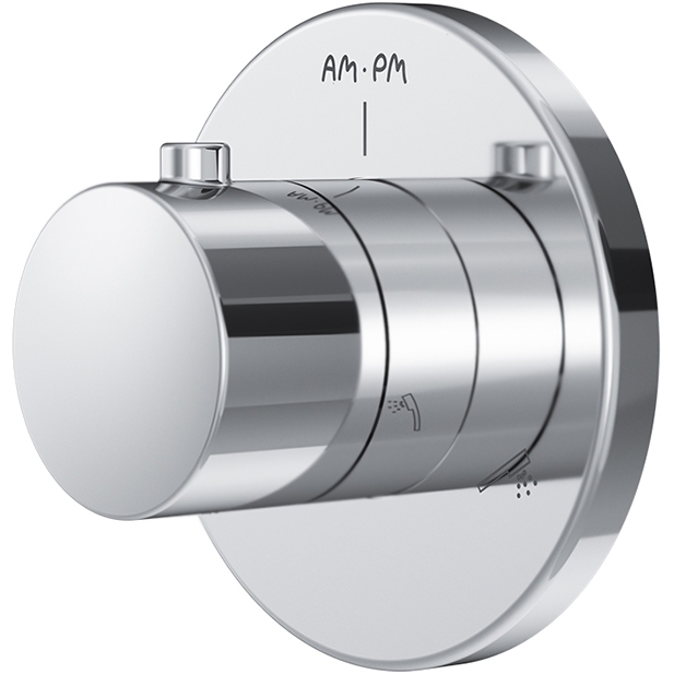 AM.PM F0800100 - дивертор с системой встраивания. Предназначен для перенаправления потока воды из верхнего душа в ручной и обратно. Оснащен керамическим картриджем. Устройство совершенно бесшумное. Механический переключатель плавно и точно рассчитывает напор и температуру воды.
