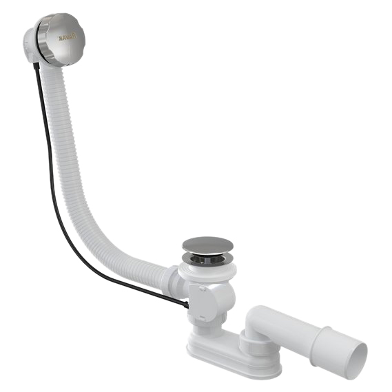 Слив-перелив Ravak X01305, управляемый тросиком, предназначен для всех типов ванн. Сифон G 1 1/2'. Хромированные декоративные накладки перелива 78 мм и пробки 70 мм. Гидрозатвор с вращающимся коленом. Диаметр сливной трубы 40/50 мм. Высота от слива до центра перелива 370 мм. Гибкая пластиковая гофротруба системы перелива длиной 570 мм. Чтобы легко определить нужную длину шланга перелива, нужно сложить высоту и длину от слива до перелива.