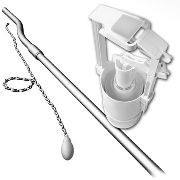 В комплект поставки: сливной механизм, цепочка с ручкой, сливная труба.