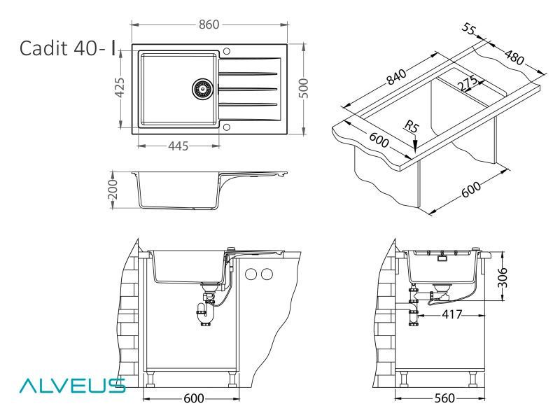 Кухонная мойка Alveus Cadit 40 1132030 с крылом - изготавливается из высококачественного гранитного композитного материала, который чрезвычайно прочен, долговечен и легок в уходе, не выделяет запаха, абсолютно безопасен для пищевых продуктов.