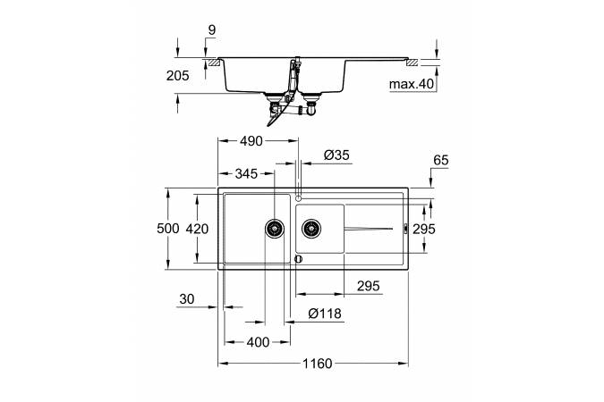 Прямоугольная кухонная мойка Grohe K400 116 31643AT0.