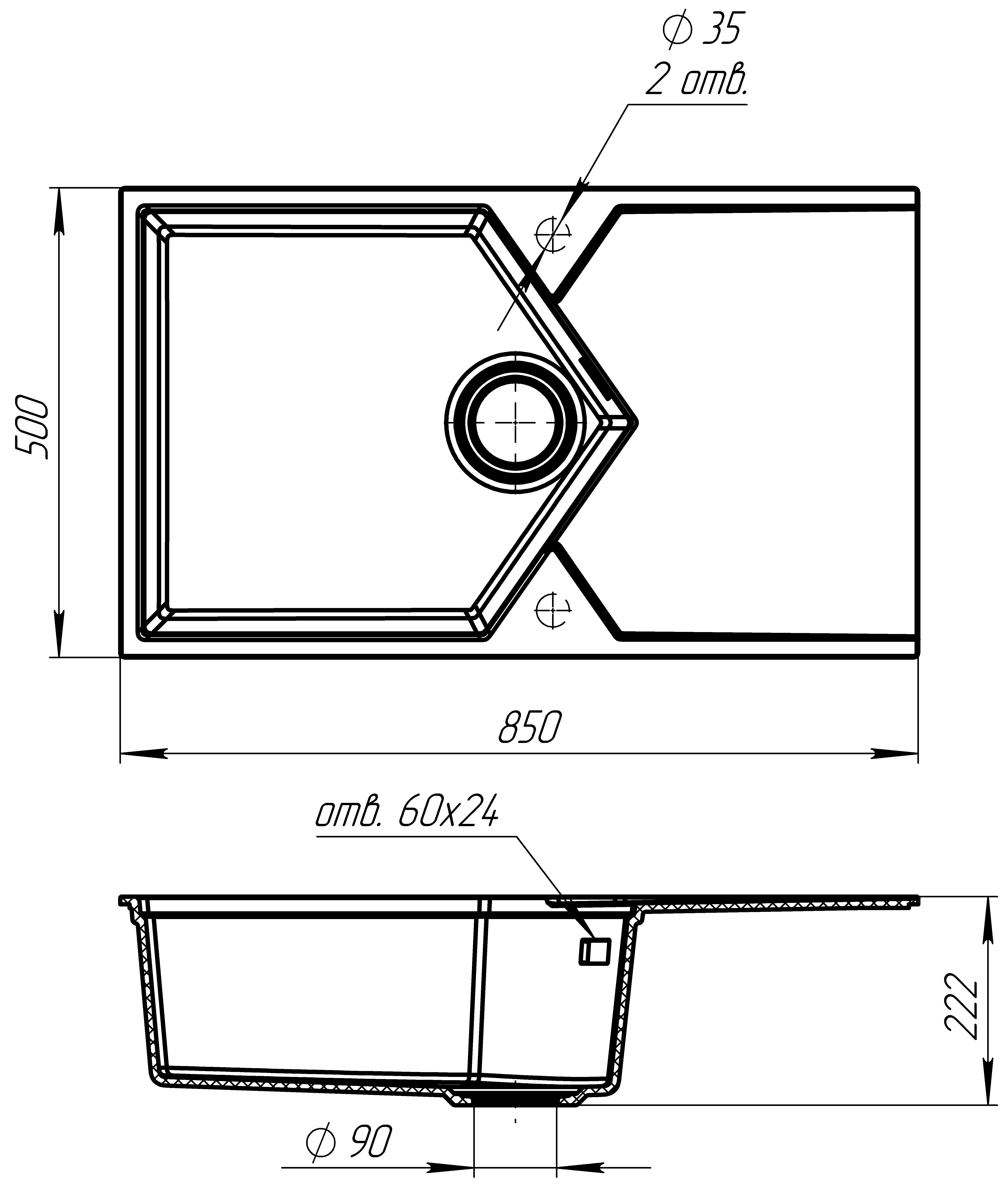 - Мойка выполнена из искусственного гранита, устойчивого к появлению царапин.