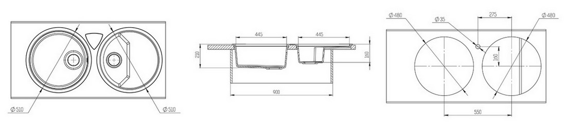 - Размер выреза под мойку: 48 х 48 см.