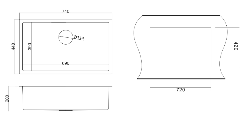 - Габариты мойки (ШхДхВ): 74х44х20 см.