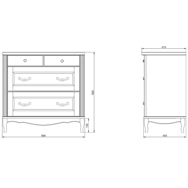 Комод ValenHouse Лиора 90 L90_KDБЗ Белый ручки Золото