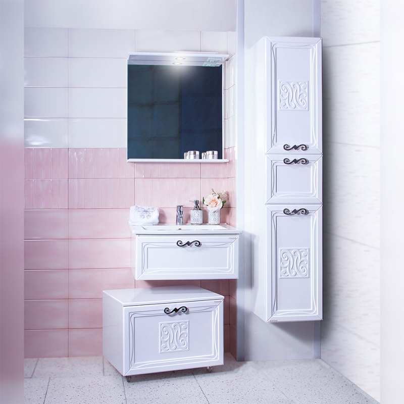 Подкатная тумба Бриклаер Адель 65 с выдвижным ящиком - выполнена в стилистике прованс с плавными изгибами декора, подчеркнутыми нарочито прямоугольными формами корпуса.