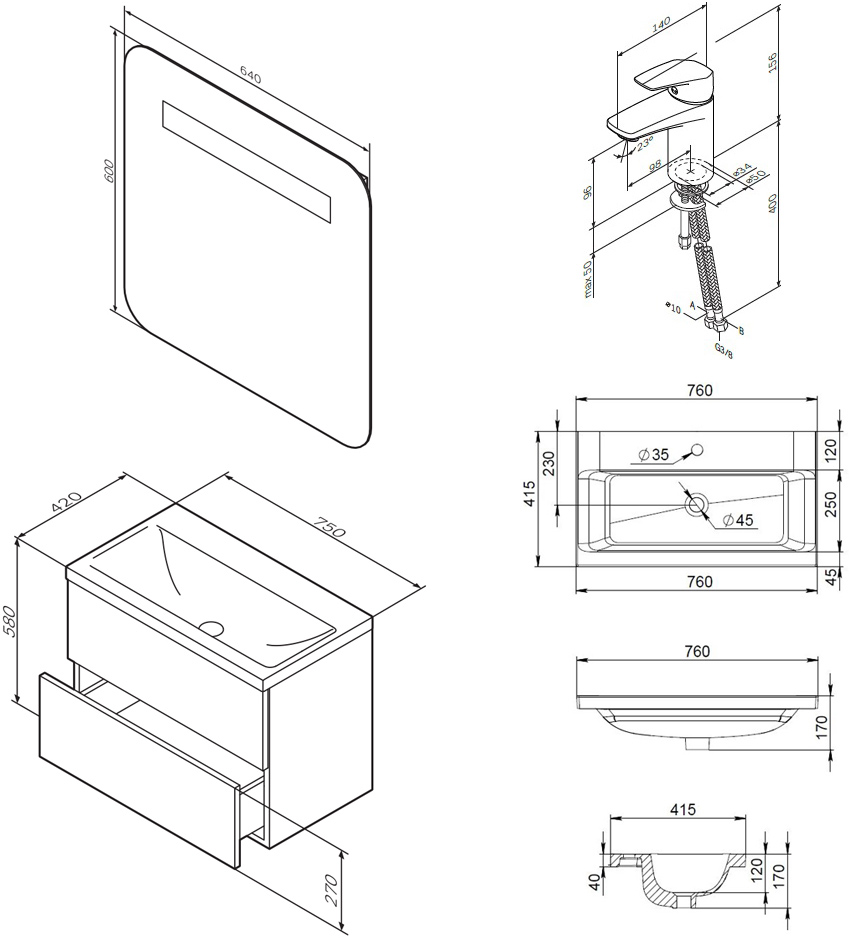Комплект мебели AM.PM Gem 75 с подвесной тумбой Gem 75 белой глянцевой, с двумя выдвижными ящиками, с фарфоровой раковиной Gem 75, с зеркалом Gem 64 с LED подсветкой, с хромированным смесителем. Для длительного срока службы в ванных комнатах с повышенной влажностью.