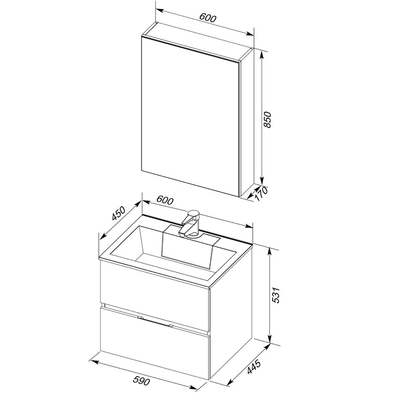 - Размеры тумбы (ШхГхВ): 59х44,5х53,1 см.