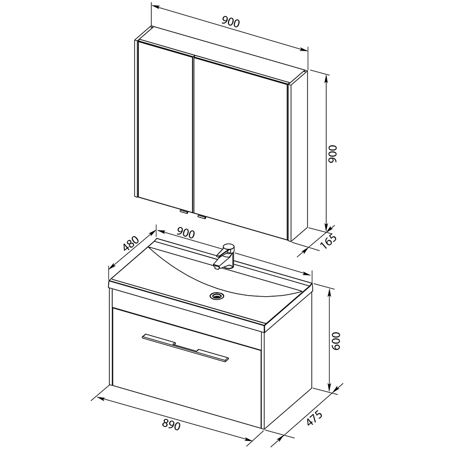 - Размеры тумбы (ШхГхВ): 89х47,5х60 см.