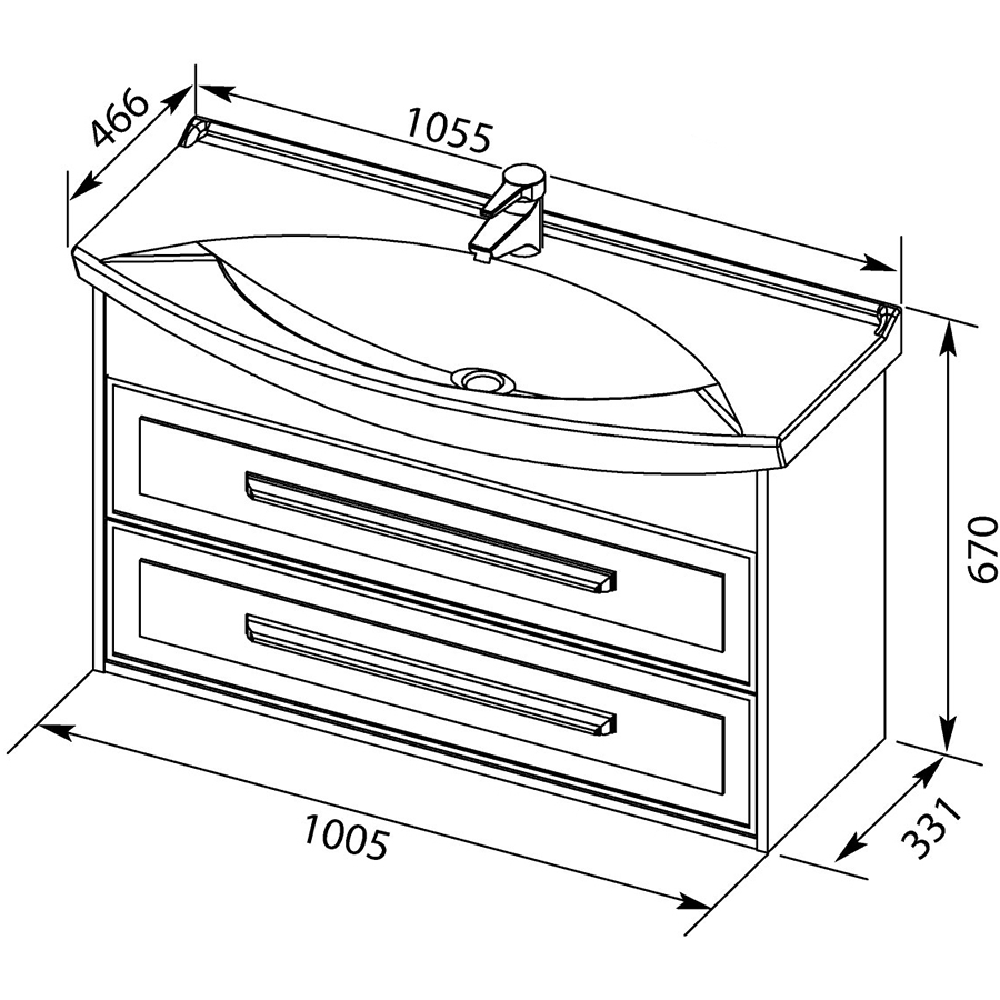 - Размеры тумбы (ШхГхВ): 100,05х33,1х67 см.