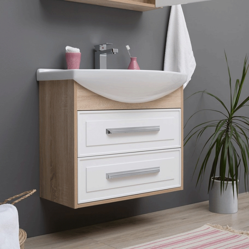 Комплект мебели для ванной Aquanet Остин 65 209014. Цвет: белый глянец, дуб сонома.