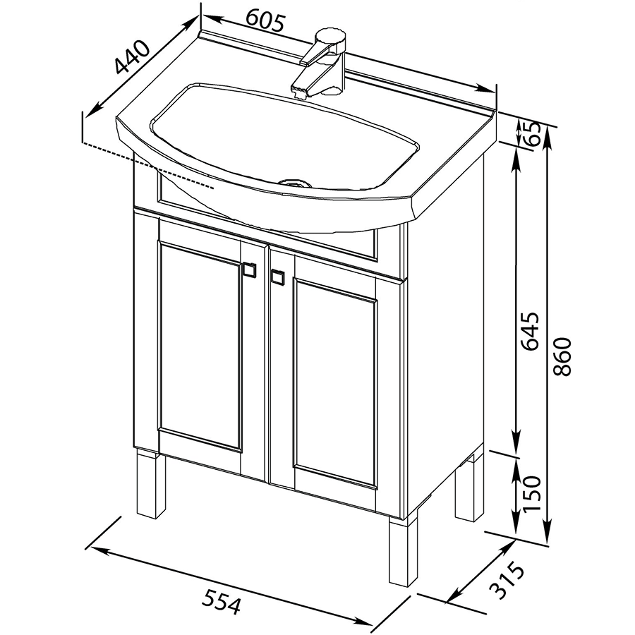 - Размеры тумбы (ШхГхВ): 55,4х31,5х86 см.