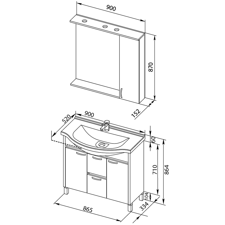 - Габариты (ШхГхВ): 90x15,2x87 см.