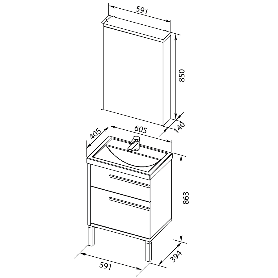 - Габариты (ШхГхВ): 59,1x14x85 см.
