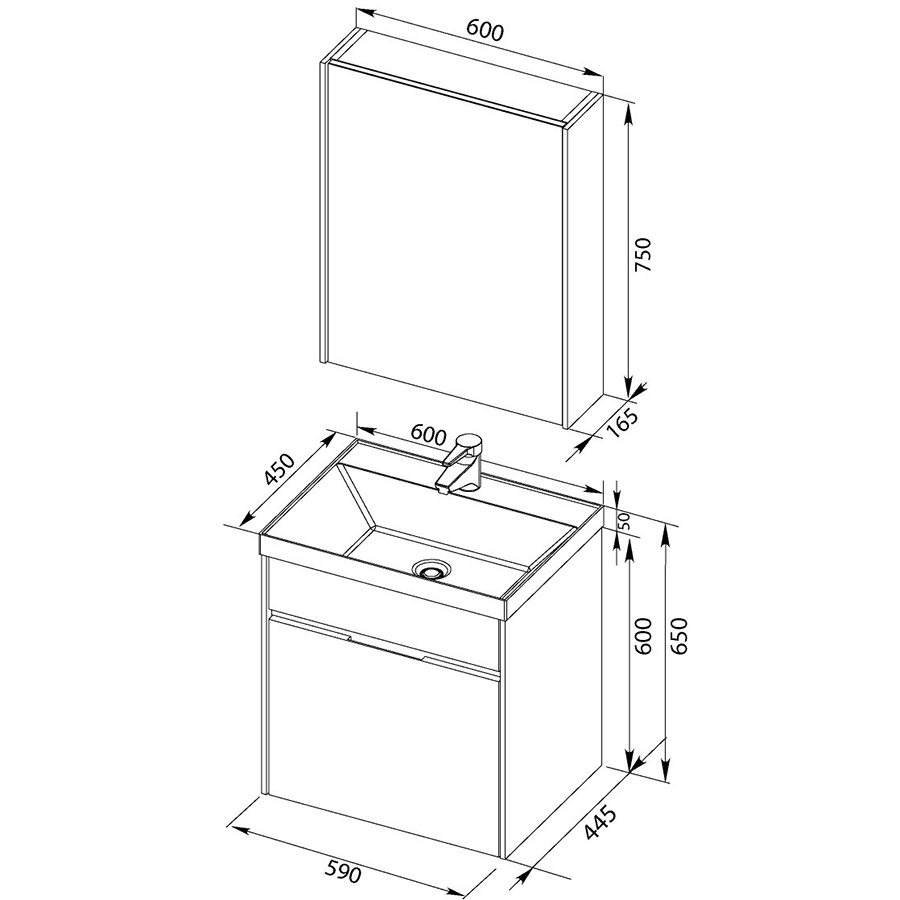 - Габариты (ШхГхВ): 60x16,5x75 см.