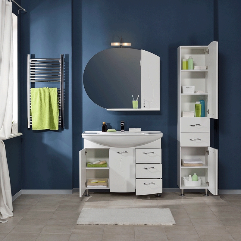 Элегантная и комфортная мебель прекрасно дополнит классический интерьер ванной комнаты.