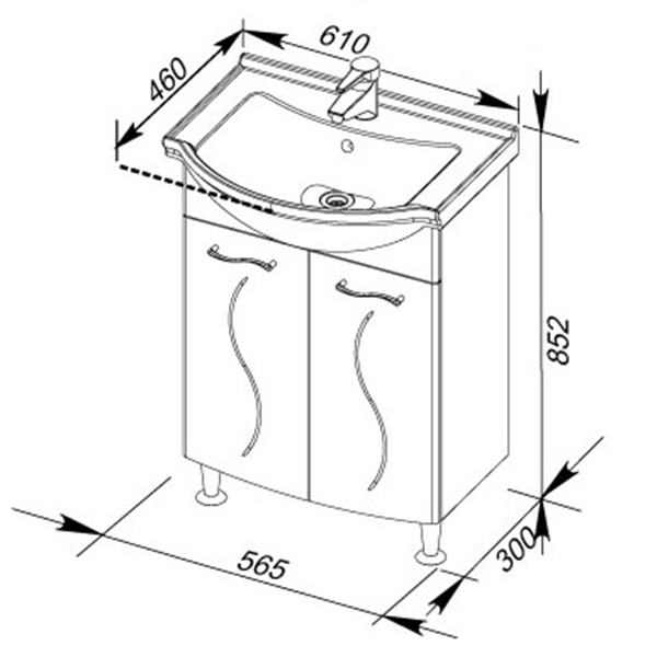 - Размеры тумбы (ШхГхВ): 56,5х30х85,2 см.