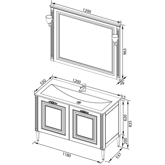 - Размеры тумбы (ШхГхВ): 118х53,7х83,5 см.