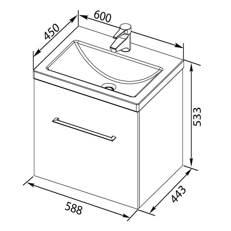 - Размеры (ШхВхД): 60х15,5х45 см.