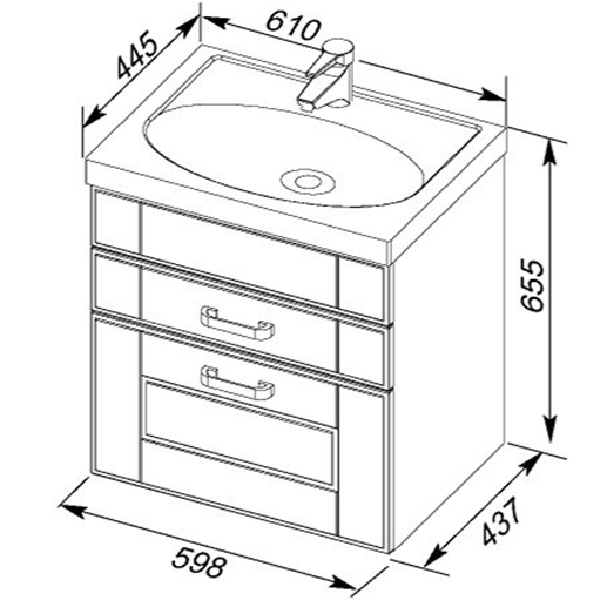 - Размеры тумбы (ШхГхВ): 59,8х43,7х65,5 см.