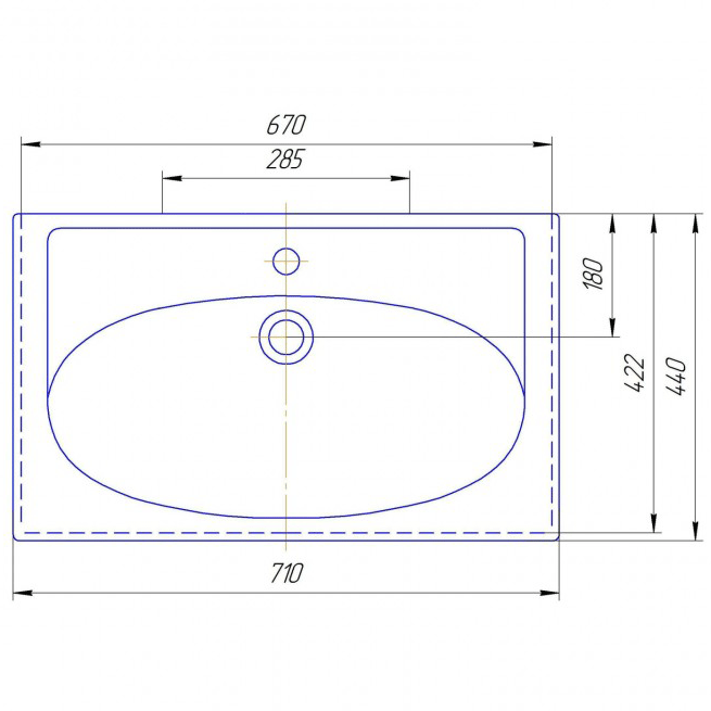- Готовых отверстий под смеситель: одно, по центру.
