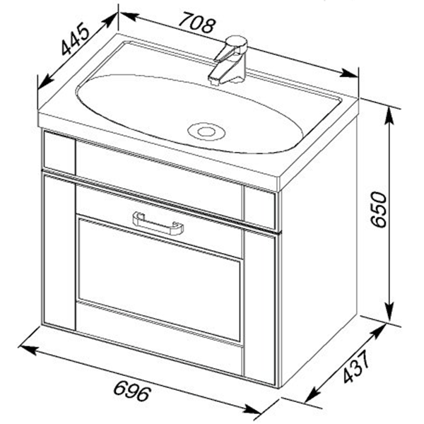 - Размеры тумбы (ШхГхВ): 69,6х43,7х65 см.