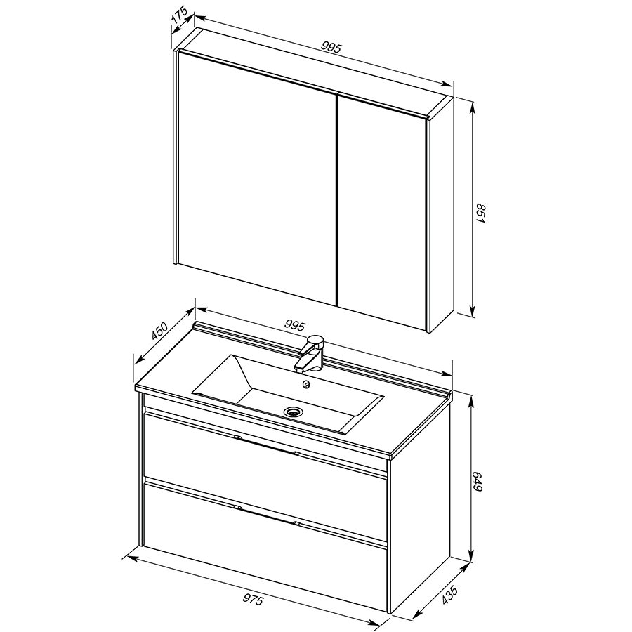 - Габариты (ШхГхВ): 99,5x17,5x85,1 см.