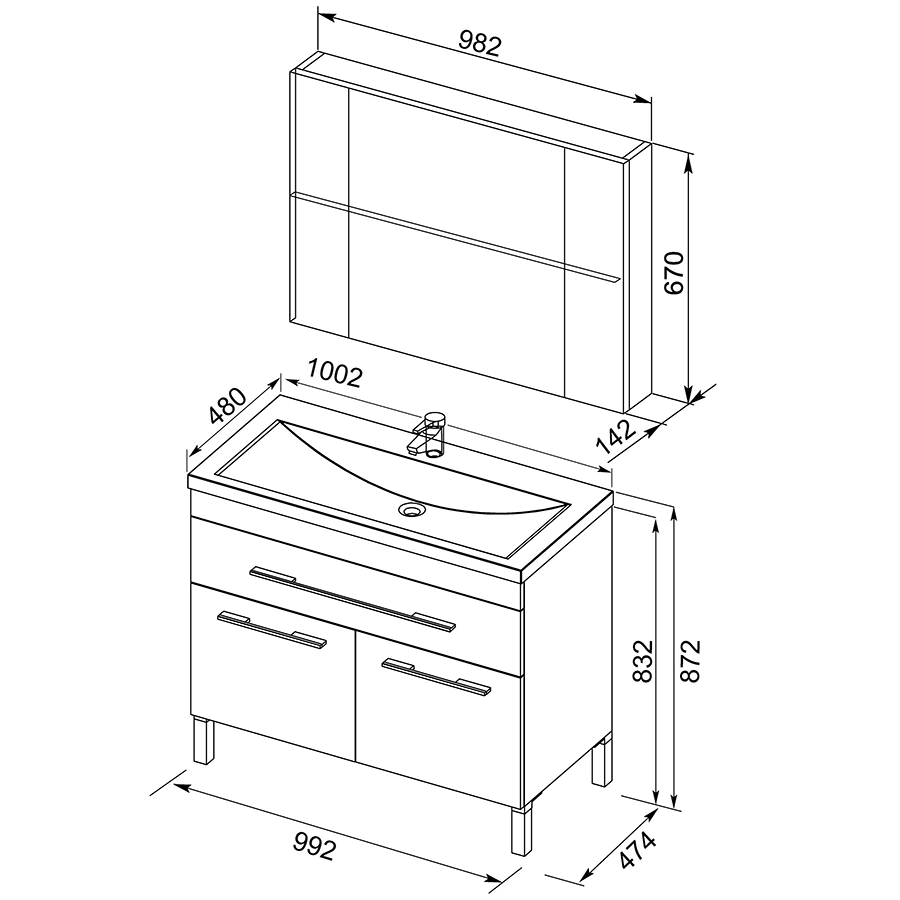 В комплекте поставки: тумба, раковина, зеркало.