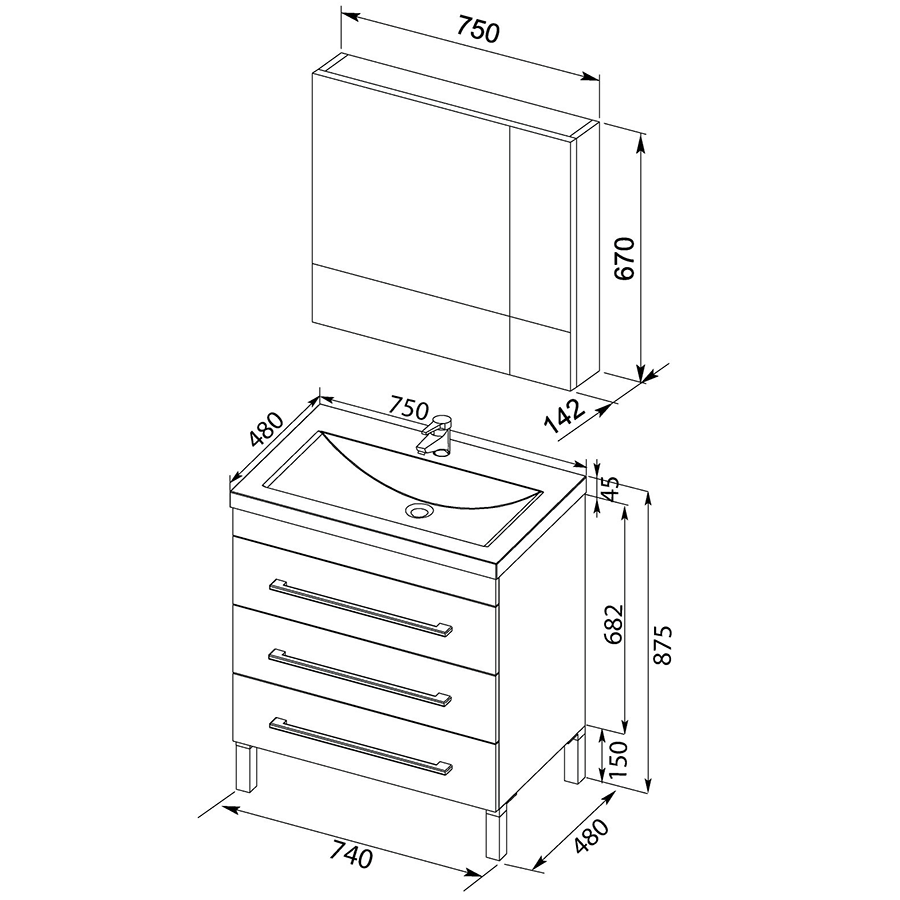 - Размеры тумбы (ШхГхВ): 74х48х87,5 см.
