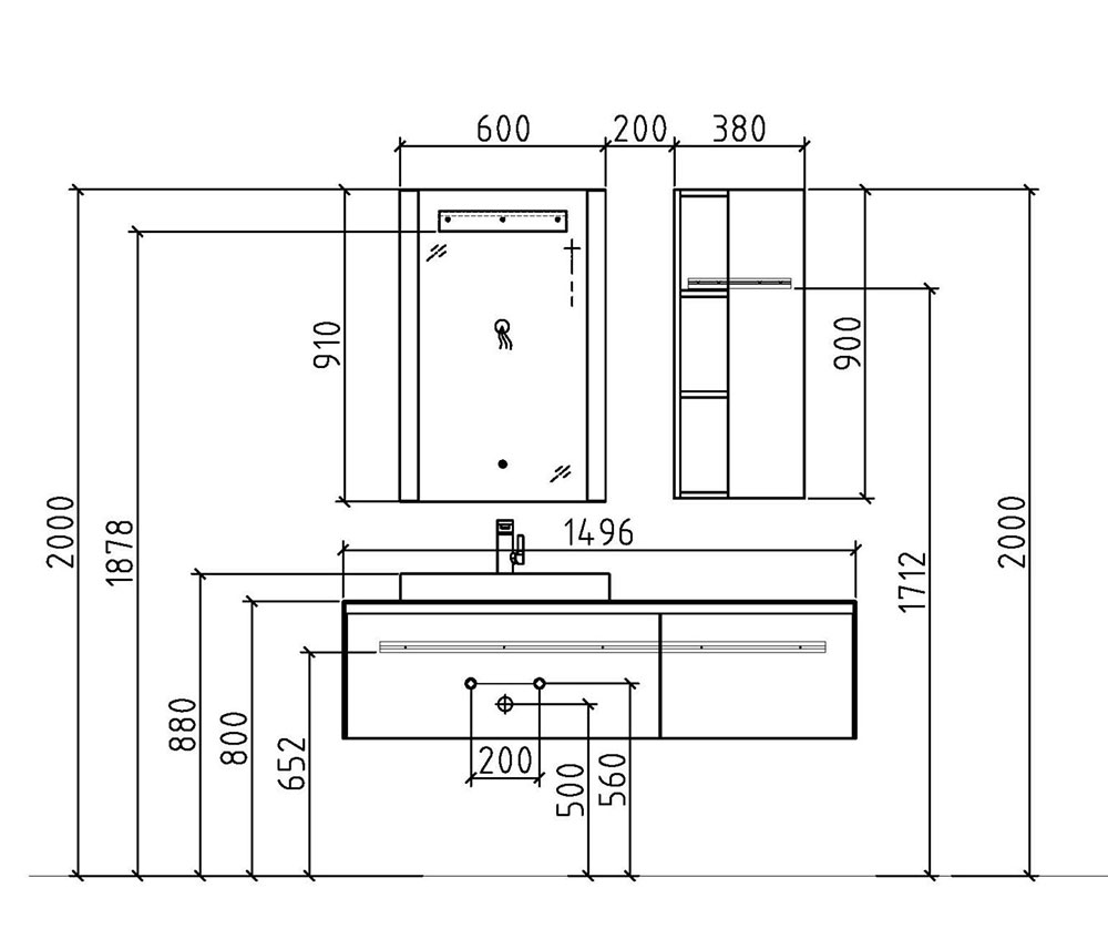 Комплект мебели для ванной Black&White Universe U911.1500 подвесной Серый